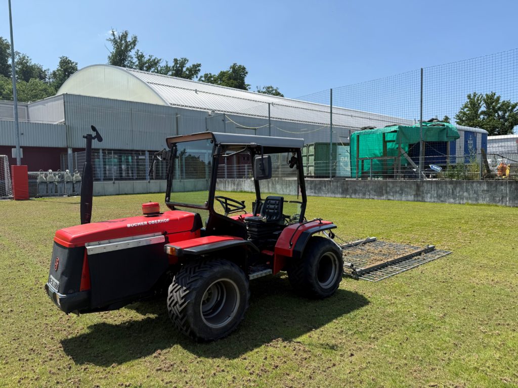- Sand- Humusgemisch werden in die Grasnarben eingearbeitet
